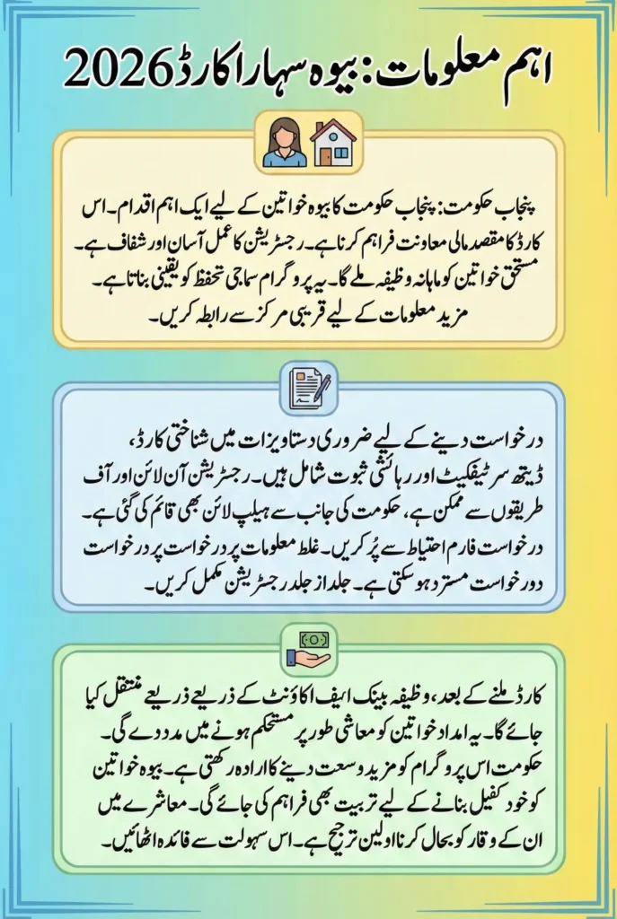 The launch of the Bewa Sahara Card 2026 by the Punjab Government is a significant step toward supporting widowed women who are facing financial challenges. The availability of offline registration ensures that even those without internet access can apply confidently. Through Khidmat Markaz and Social Welfare Facility Desks, the government has created a system that is simple, transparent, and respectful.