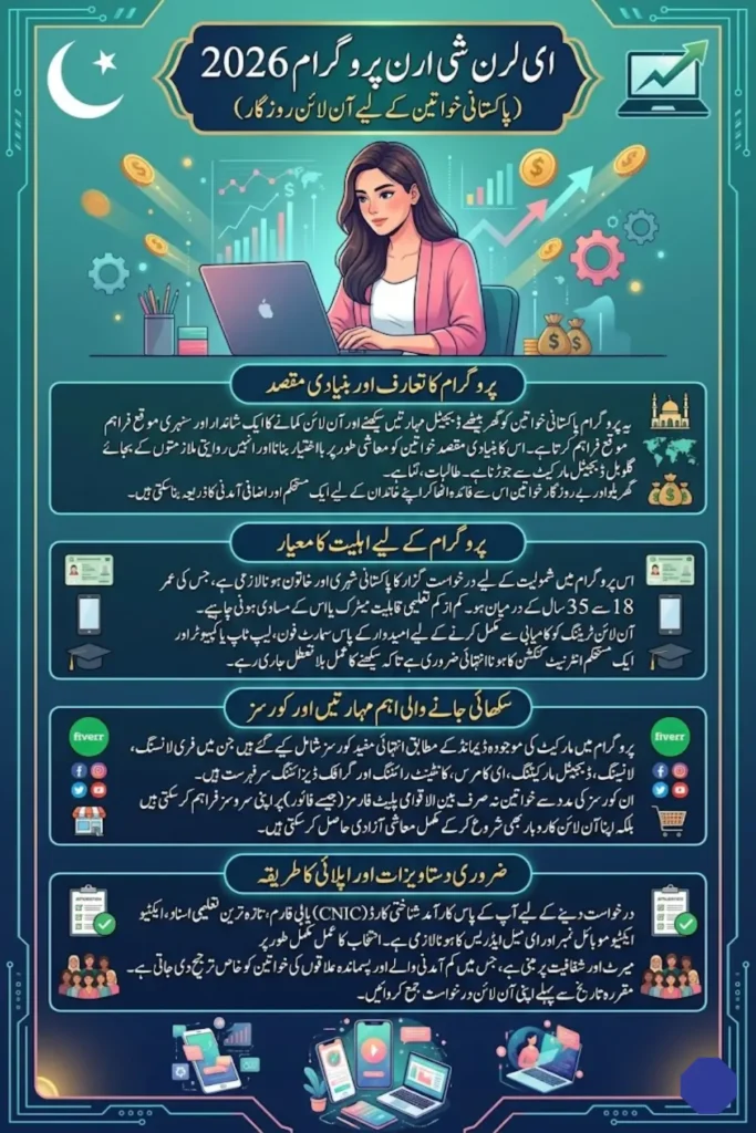 e-Learn She Earn Program 2026 Eligibility Requirements The e-Learn She Earn Program 2026 is emerging as one of the most important initiatives for women in Pakistan who want to learn digital skills and earn online. Across the country, especially in smaller cities and rural areas, women often face limited job opportunities. This program directly addresses that gap by offering structured training that can be accessed from home. It is designed in a way that even beginners can start learning and gradually build professional-level skills.