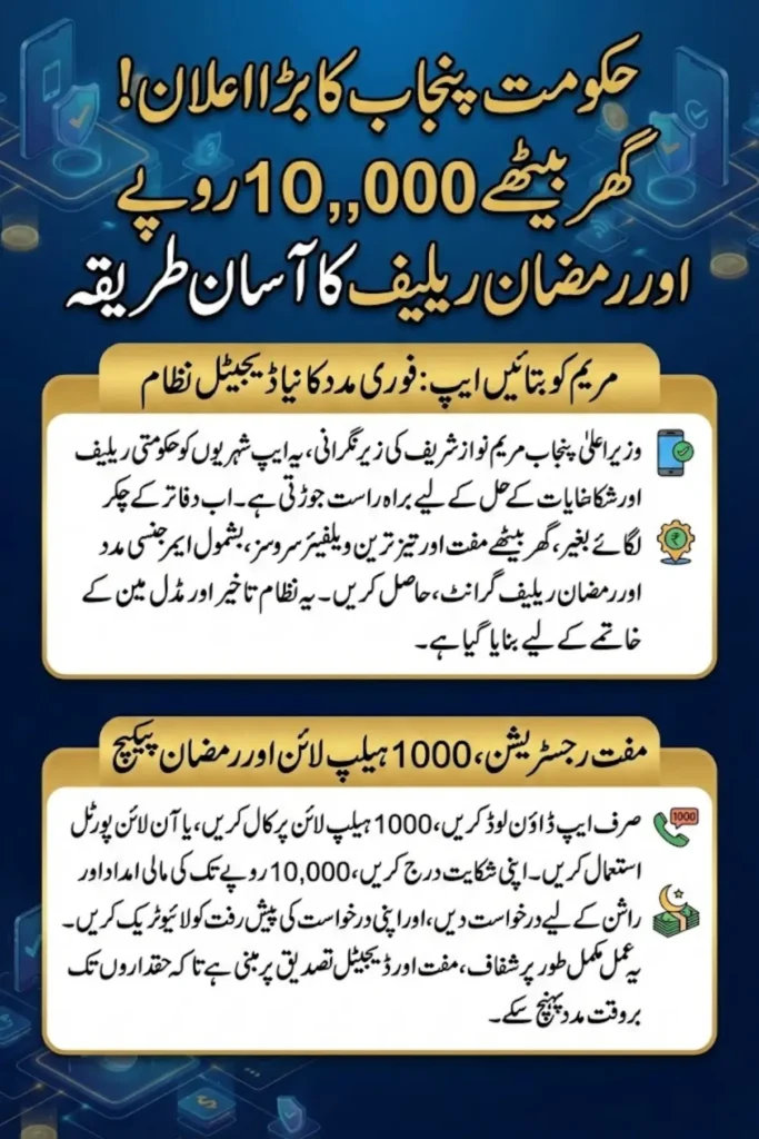 Through helpline 1000, the mobile app, and the online portal, eligible families can apply for Ramzan financial assistance of up to Rs. 10,000 without visiting offices. The initiative reflects a shift toward digital governance, helping deserving households receive support with dignity and efficiency.
