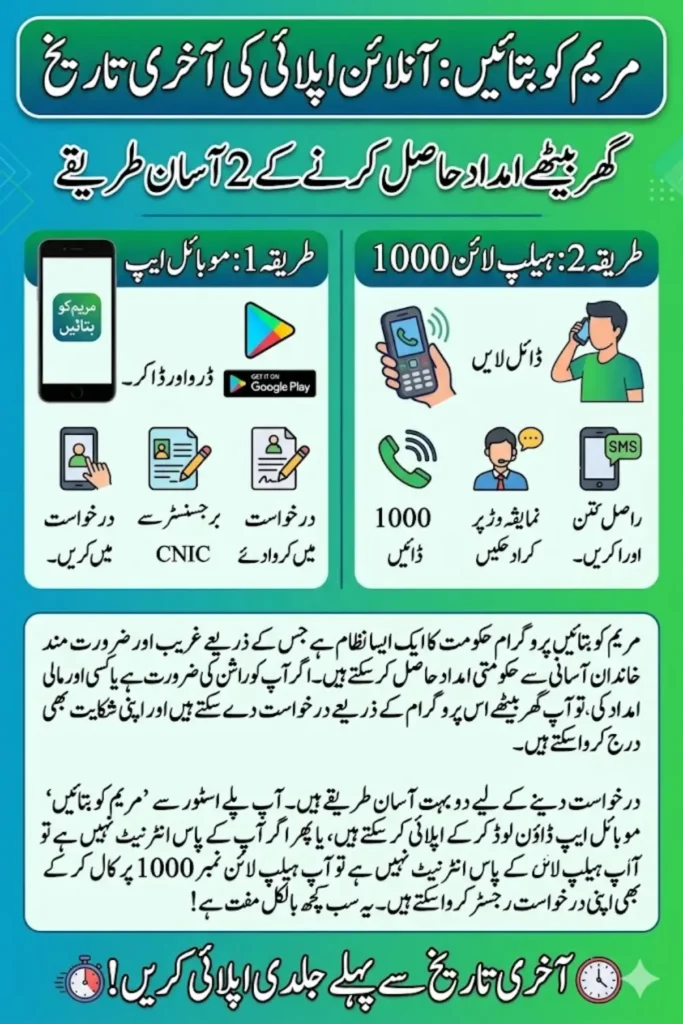 The maryam ko batain online apply system provides a convenient way for citizens to connect with government services and request assistance. Through the mobile application, helpline, and SMS services, applicants can easily submit requests without visiting government offices.