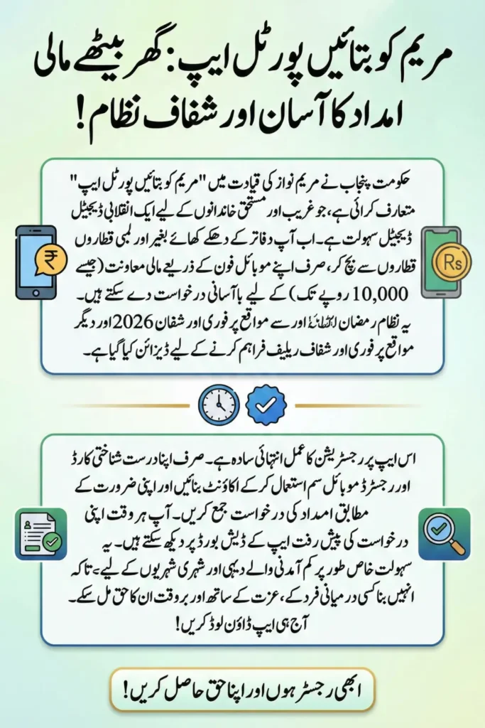 The maryam ko batain portal app is a digital welfare platform introduced to provide fast and transparent financial assistance to deserving citizens across Punjab. The initiative focuses on simplifying access to government support through mobile technology so people can apply without visiting offices or waiting in long queues. Through this system, applicants can register, submit requests, and track their applications directly from their phones.