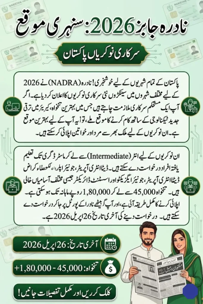 NADRA jobs 2026 provide excellent government career opportunities for candidates across Pakistan. With competitive salaries, job security, and digital application facilities, NADRA remains one of the top government employers in 2026. Candidates should apply before the deadline to secure their opportunity.