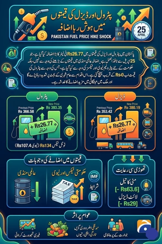 Fuel price increases in Pakistan do not stay limited to petrol pumps. They quickly spread across the entire economy, affecting transportation, food prices, and basic living costs. Diesel is particularly important because it is widely used in goods transport and agriculture.