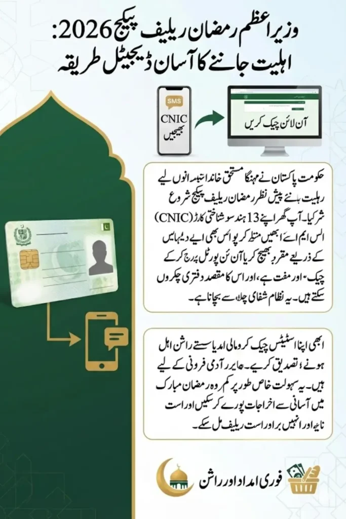 The PM Ramzan Relief Package check status process allows eligible families in Pakistan to confirm whether they qualify for financial assistance during the holy month of Ramzan. Due to rising inflation and increasing household expenses, the government has introduced a simple digital system to help low-income citizens verify their eligibility without visiting offices. This guide explains how to check status using CNIC through SMS and online methods in 2026.